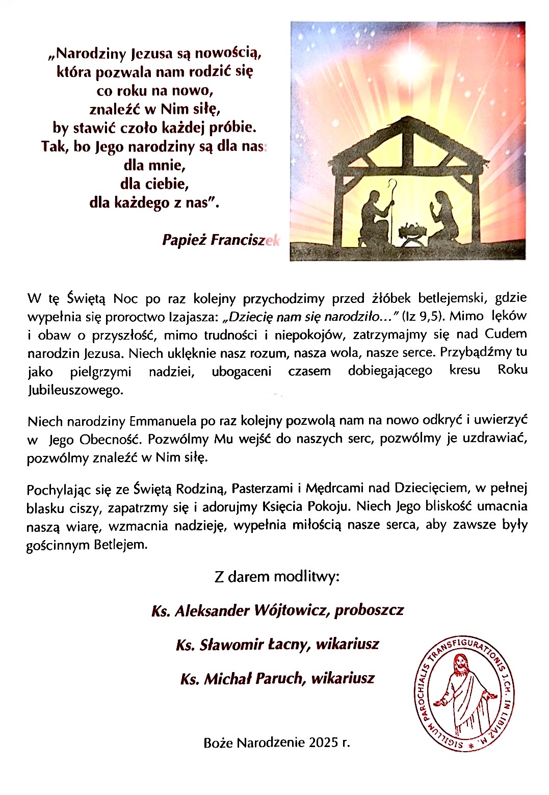 - Ogłoszenia Duszpasterskie 4. Niedziela Adwentu – 21 XII 2025 r.1.Dzisiejsza niedziela przygotowuje nas bezpośrednio do przeżywania Wigilii i radosnej… Dowiedz się więcej: Ogłoszenia Duszpasterskie 4. Niedziela Adwentu – 21 XII 2025 r.